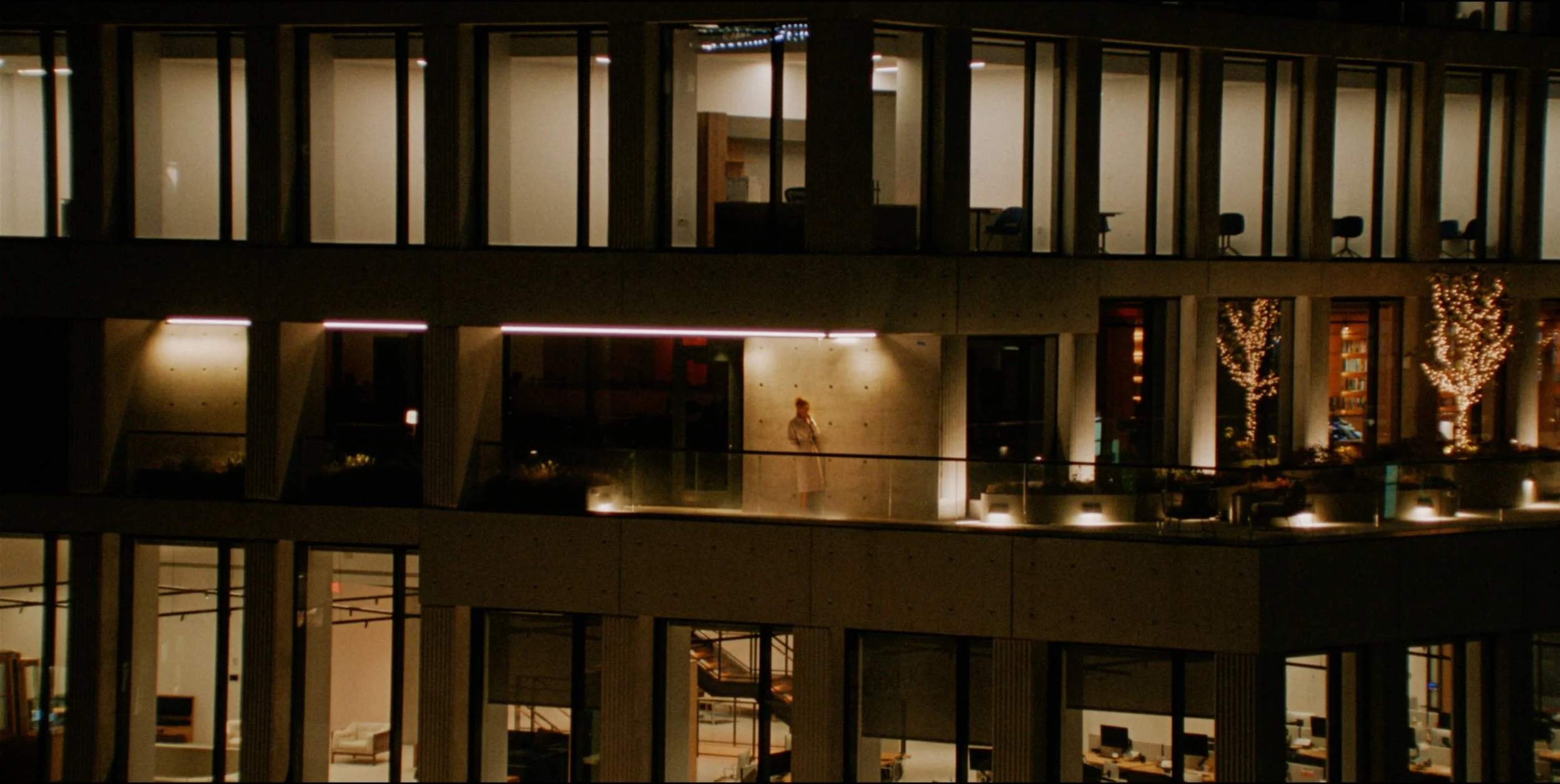 To paint her portrait of a corporate boss who explores the darkness of her repressed desires, Halina chose to “be very open with the audience.” When it came to color, Halina engaged Harbor Colorist Damien Vandercruyssen to further explore this contradiction. Referencing Paris, Texas for its rich, warm colors, Halina aims to show a corporate world in a more classically feminine light, not a masculine robotic world. She tells me that she decided to lean into “the cliche of feminine beauty through color with a lot of red.” But moreover, she looks for humanity. She references the opening scene of Bodies Bodies Bodies, in which two of the main characters kiss. She’s intentional to show a birthmark and some acne in that moment, and notes that this search for humanity has a constant presence in the world of Babygirl as well.
